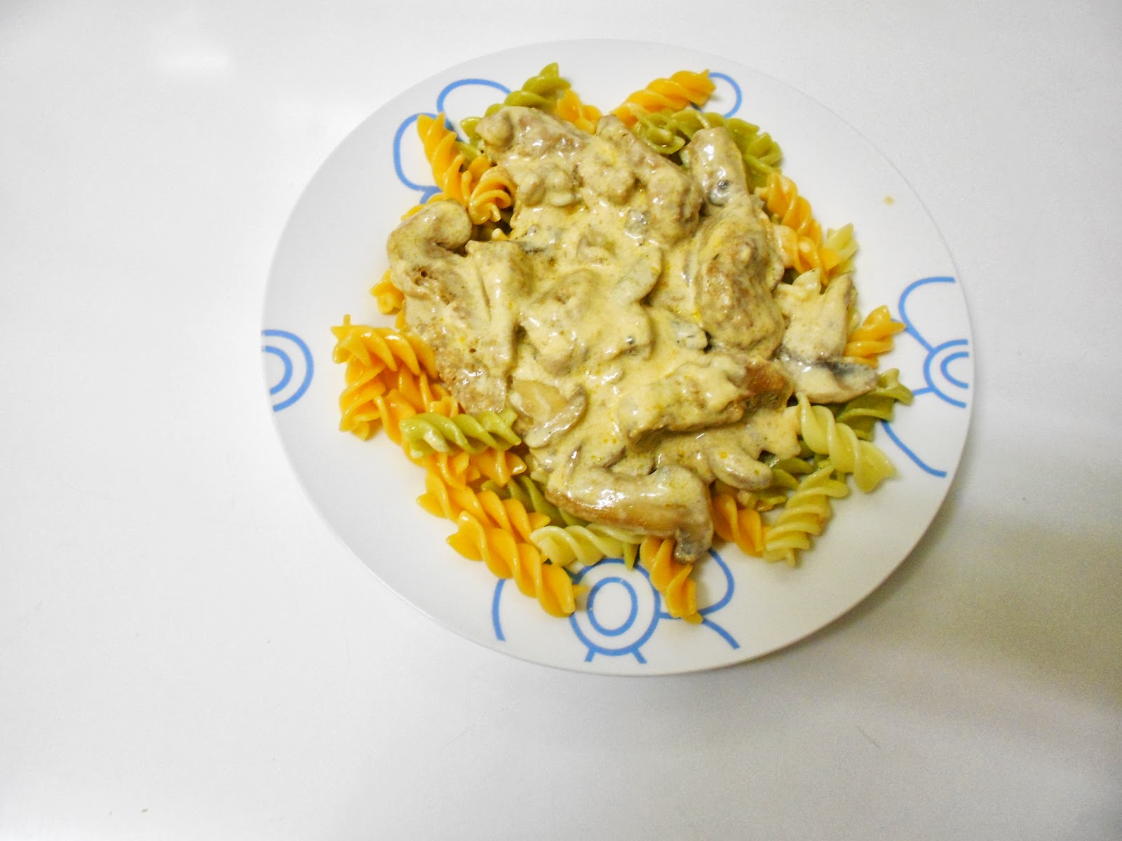 2 - Numa frigideira aqueça o azeite e junte o alho picado, salteie os cogumelos e os bifes de soja depois de fatiados, acrescente o molho de soja e por fim as natas, mexendo sempre até engrossarem, acompanhe com massa fusilis e uma salada mista.